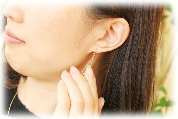 全長 約47.0mm横 約2.0cm デザイン寸法 [長い方のチェーン]約3.5cm [短い方のチェーン]約2.5cm 地金材質 K18(アレルギーを起こしやすいニッケルは使用しておりません) 1個=1ペア(両耳分)でお届け致します お手入れ 使用後は皮脂や汗等をやわらかい布で拭きとり、ケースにしまう。