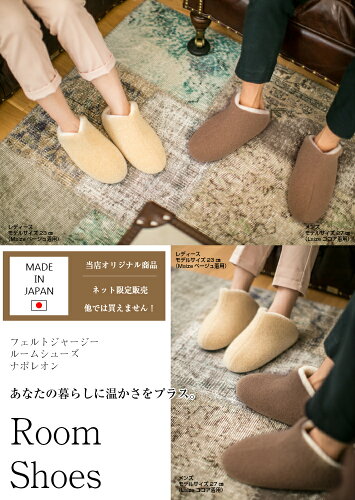 スリッパ 暖かい メンズ レディース 洗える フェルトジャージー・ナポレオン(S・M・L) ルームシューズ もこもこ