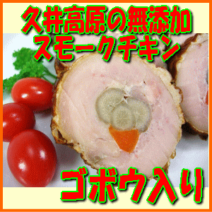 商品説明 無薬で育てた広島産の鶏のモモ肉でゴボウとニンジンをロール状に巻きし無添加でスモークしました。